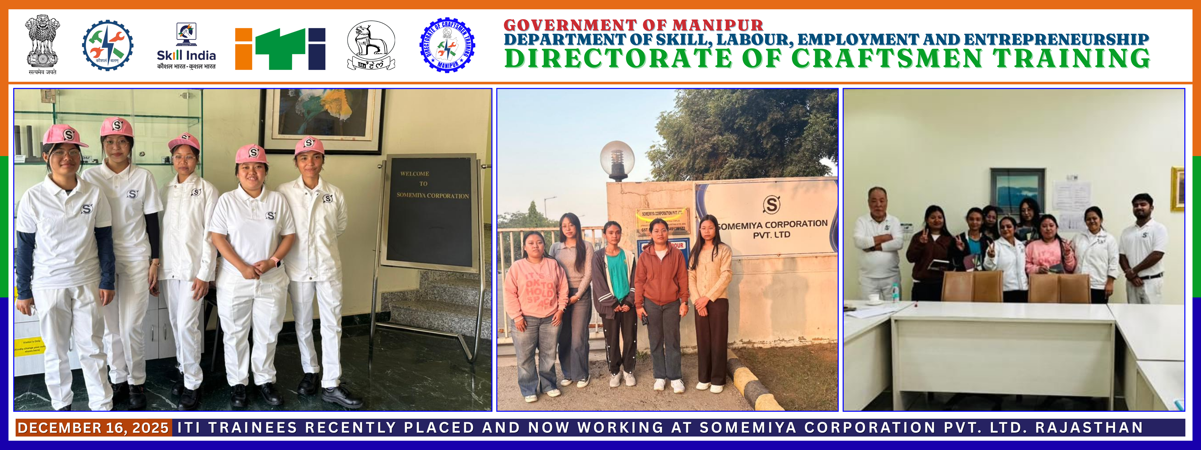 Felicitation-cum-Interaction Programme of Selected Candidates for Japan, Date: 8th Jan, 2026; Time: 11: 00 A.M onward;Venue: Survey Hall of Government ITI Imphal, Takyel, Manipur.Placement drive on 6th January, 2026 at Govt. ITI, Imphal, Takyel by MGT MOTORS LTD.Placement drive on 7th January, 2026 at Govt. ITI, Imphal, Takyel by JCNT ELEVATORInformed to all the Principals/Supdt. (Tech.) of Govt lTls,Manipur, that the FinancJ DSpartment has commenced the exercise for preparation of RevisedEstimates for the year 2025-26 and the Budget Estimates for the year 2026-27Order: ExaminerNotice : The Aptitude Test for the session 2025-26/27 shall be completed by 31st October, 2025.Details of admission feesCircular: It is hereby informed to all the concerned Principals and Superintendent (Tech.) of Govt. ITIs, Manipur to organise Swachhata Hi Seva (SHS) campaign, 2025 under the banner” Clean Green Festivities under Swachhata Hi Seva (SHS), 2025”Circular: The CMIS Employee Corner (https://employee.man.nic.in) has been launched to provide staff access to service profile and payroll details. Employees with EIN may register online or via the mobile app available on Play Store.Hostel ResultsNotice: Spot AdmissionNotice: Office time Scheduled from 09: 00 AM to 05:00 PM.Notice for academic session 2025Second round selection list for Admission 2025Online Admission LinkDetails Regarding Admission Fees & OthersCircular: Participation in India Skills Competition 2025 – Awareness and Registration DriveResult/Admission Notification for Academic Session 2025-2026/27Office Memorandum: I am directed to inform all the concern HoO to comply with this OM.CircularFinal Seniority list of Grade-IV in respect of this Directorate.Notice: Nominations for the National Award for Excellence in Vocational Training & Entrepreneurship Development (2024) have started from 3rd July 2025.Notice: It is hereby informed to all the concerned Principals of Govt. ITIs Manipur that there will be a meeting in Hybrid Mode(including VC), on Tuesday, the 8th July, 2025 at 11:00 am in the Conference Room: 1. Land Records and Related Documents, 2. MiscA tentative Seniority list in respect of Grade-IV post under this Directorate of Craftsmen Training, Manipur is hereby published as Annexure-A.Notice: It is hereby informed to all Crafts Instructor of Electronics & ICTSM at all Govt. ITIs that CFDAC, Hyderbad is Organizing (FDPS).A Final updated Seniority list enclosed as Annexure-A in respect of L.D.C Post, 2025PROSPECTUS FOR ADMISSION TO GOVT.INDUSTRIAL TRAINING INSTITUTES 2025-26/27ITI Admission Notice with Brochure for the Academic Session 2025-26/27A tentative Seniority list in respect of L.D.C post under this Directorate of Craftsmen Training, Manipur is hereby published as Annexure-A.It is hereby circulated to all the concerned Principals and Superintendent (Tech.) of Govt. ITIs, Manipur, Aadhaar Integration in Central Management Information System (CMIS), in the given format enclosed as Annexure, on or before 5th June, 2025.It is hereby circulated to all Principals of Govt. ITIs Manipur that the Manipur Civil Services Tennis Association (MCSTA) is organizing the Civil Services Tennis Tournament, 2025 at the Officers’ Club, Lamphelpat from 9th May to 11th May, 2025.It is hereby circulated to all Principals of Govt. ITIs Manipur that there will be meeting on 29th April, 2025 at 11:30 am in Conference Room of this DirectorateNotification for Engagement of Graduate/Diploma Apprentices/Trade(under Apprentices Act, 1961) for the year 2025-26 in Airports Authorities of India, North Eastern RegionThe Directorate of Craftsmen Training, Manipur expresses gratitude to NSDC for their support in facilitating online job registration for students, significantly boosting their career prospects. It is inform to all staff that they should attend office in time during this March Financial year 2024-2025Responsibilities and Consequences of Non-Compliance with the Transgender Persons (Protection of Rights) Act, 2019Formation of the Committee for the Welfare and Empowerment of Transgender Persons under the Protection of Rights Act, 2019The following staff members have been appointed as Nodal Officers to oversee the implementation of the Prime Minister’s Internship Scheme within the Directorate of Craftsmen Training, Manipur.It is hereby informed to all Principals of Government ITIs in Manipur that a meeting chaired by Secretary, SLEE, Govt. of Manipur will be held on 19th February, 2025 at 12:00 Noon in the Office Chamber of Secretary (SLEE), Govt. of Manipur.All Principals of Government ITIs in Manipur are required to prepare a PowerPoint presentation covering key details and submit both soft and hard copies by this week for a meeting with the Secretary (SLEE), Govt. of Manipur, scheduled for next week.Schedule for Manipur Legislative Twelfth Assembly, 7th Session commencing from 10th February, 2025.All concerned Principals, Superintendents (Tech.), Supervisors, Crafts Instructors (Engineering & Non-Engineering), and Storekeepers are requested to submit their qualification details (Educational, NCIC, etc.) to this Directorate by 17th February 2025 for record updation and official purposes.Internal Complain Committee in Connection of Sexual Harassment of Women at Workplace.Annoucement : Exam result for SCVT 2025The Directorate of Craftsmen Training, Manipur website is now fully developed and accessible to everyone from anywhere. Explore our resources and stay connected with us!A Campus Placement Drive by GE Healthcare will be held on 10th Jan,2024 at Govt. ITI, Takyel, (Imphal)Online Registration